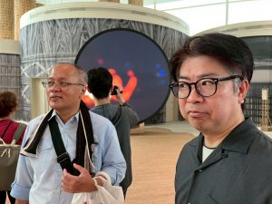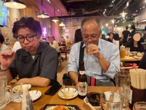 午前11時頃に早めの昼食(もちろん、おビール一杯付き)をとり、みんなで会場のOsakaMetoro中央線 夢洲駅に向かう。