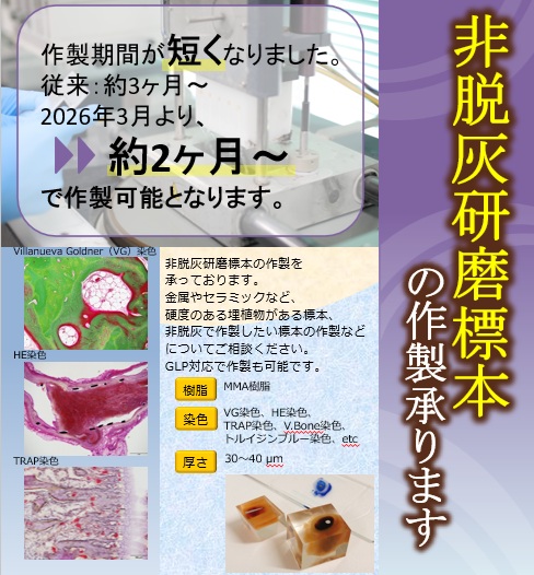 非脱灰研磨標本作製について作製技術の向上により納期を短縮しました。